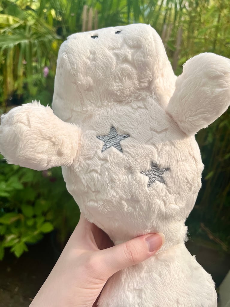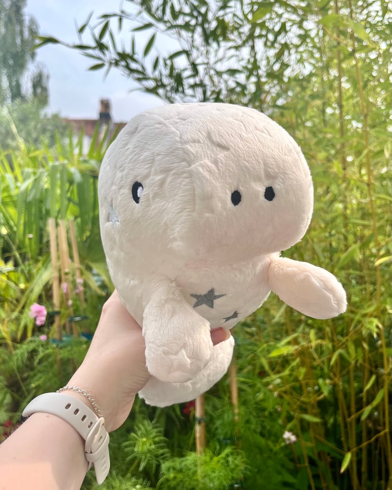 Your favourite salt air, cosy cabin, forest dwelling swiftie manatee! This fluffy manatee is made from high quality, polyester plush fabric, embroidered eyes, nostrils and stars and 100% recycled super soft polyester stuffing.