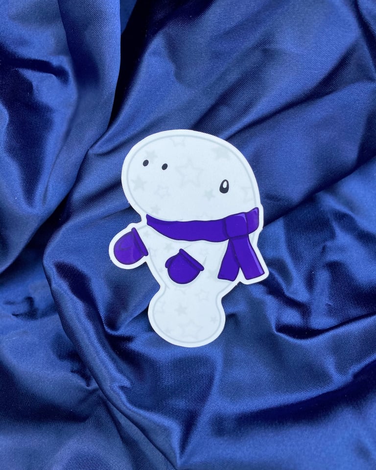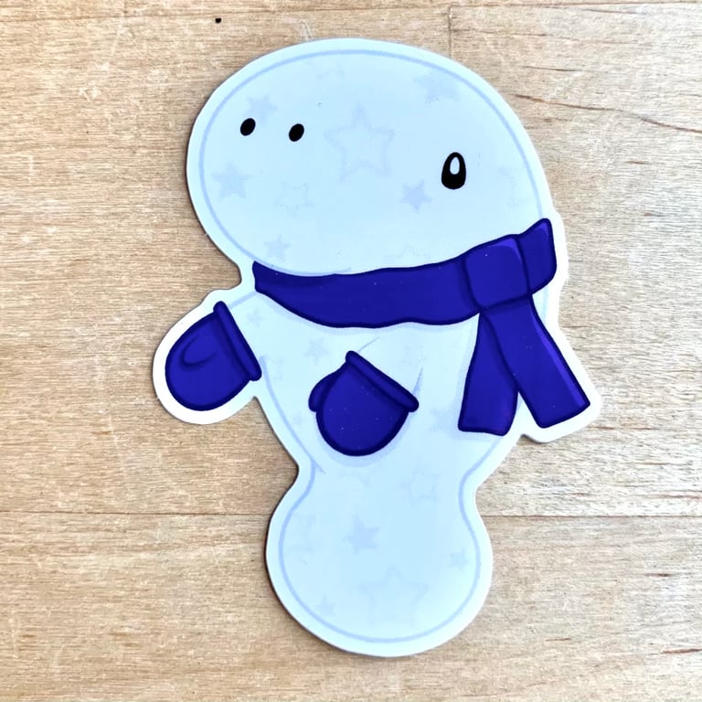 Glossy coated vinyl Milky Way Manatee Sticker, all dressed up for winter in its little scarf and mittens.