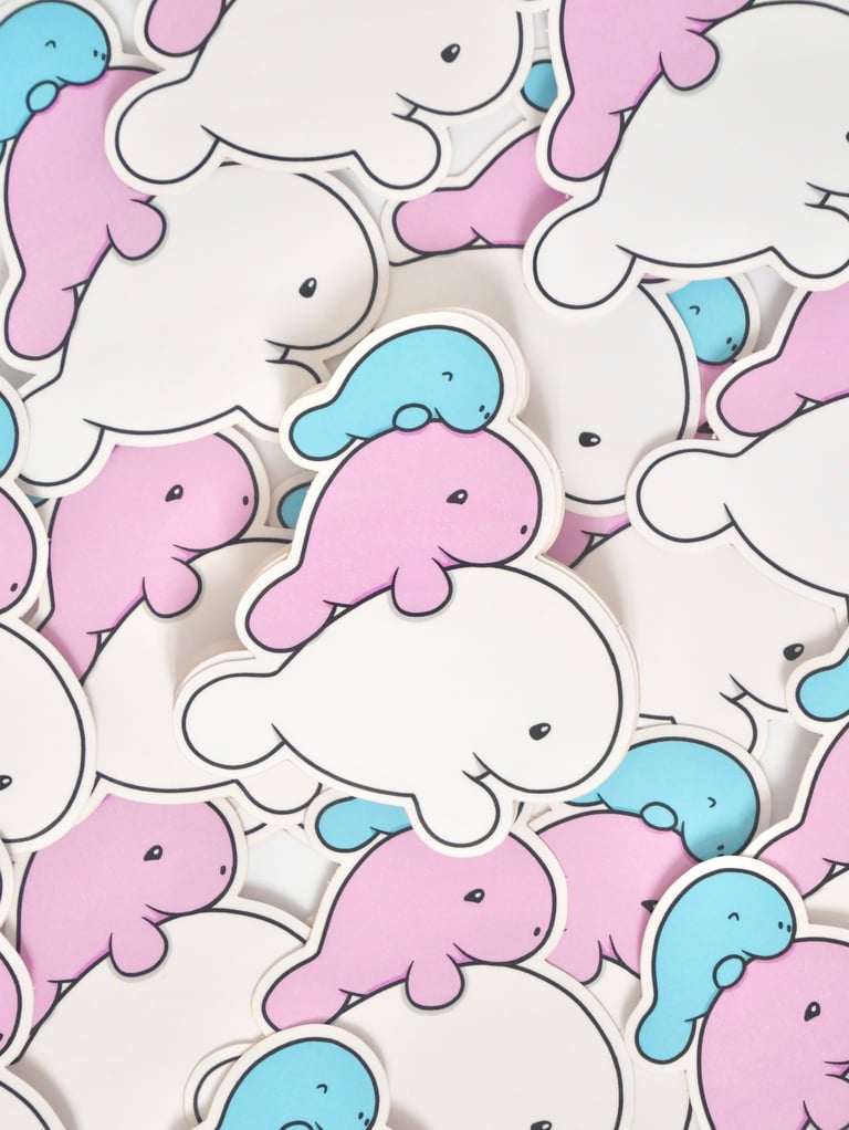 All four vinyl Pride Manatee Stickers, ready to celebrate pride month!